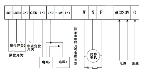 (一)外部接线,连接电源、电机电源线、限位开关线,按颜色和编号对号接线。