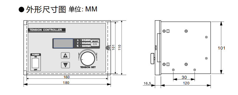 - 采 用 按 键 和 脉 冲 电 位 器 调 节 张 力。