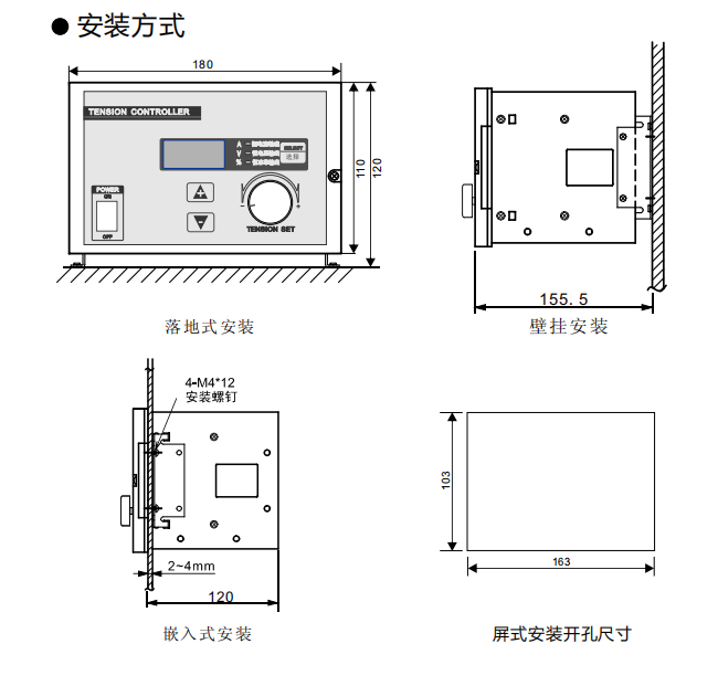 | 安 装 方 式 | 落 地 式 安 装 , 壁 挂 式 安 装 , 嵌 入 式 安 装 |