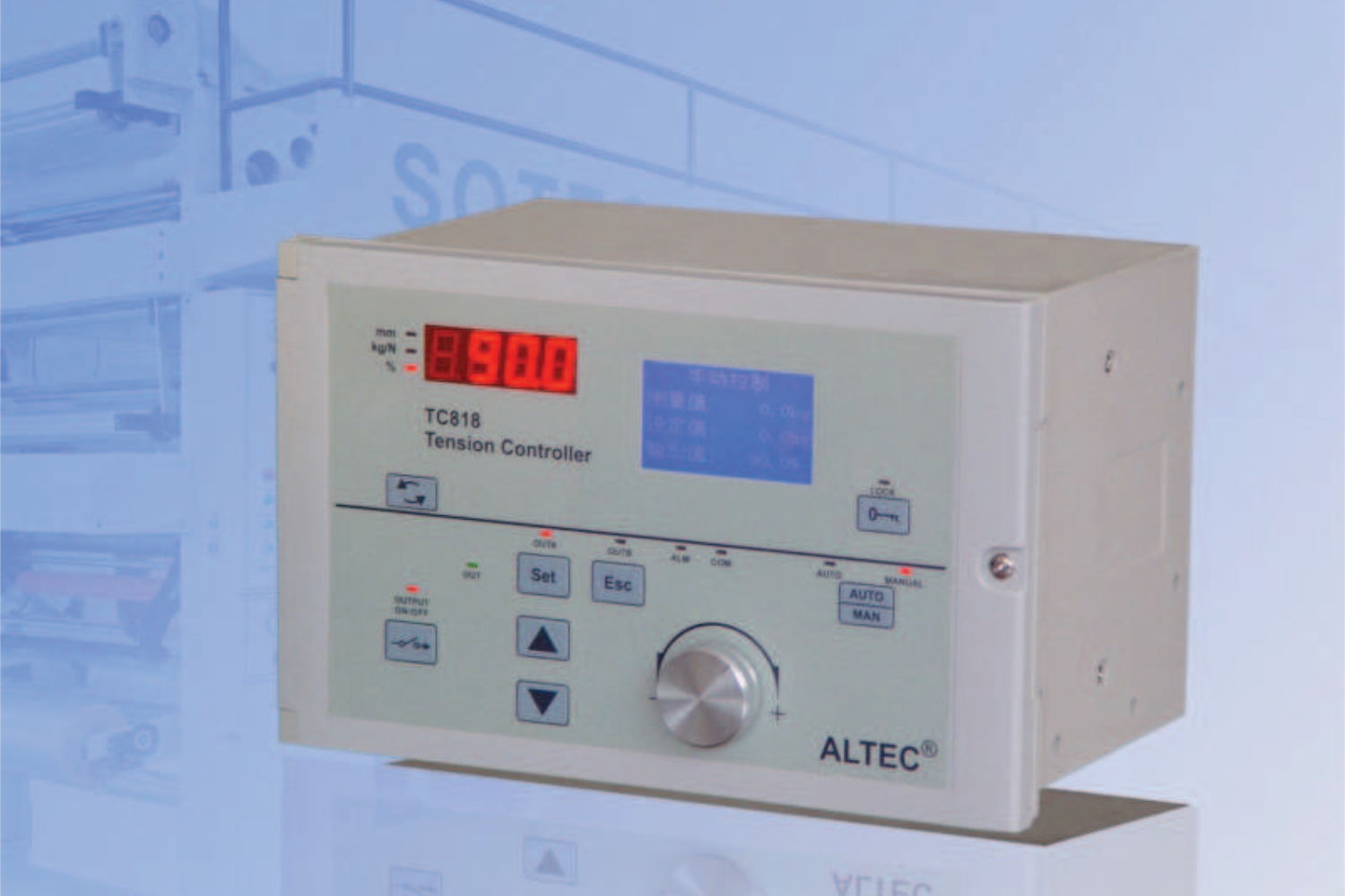 TC818张力控制器采用图形液晶显示器,可选择中、英文显示,界面友好易用,可输出0~24V/4A或0~36V/3A直接驱动磁粉离合器,磁粉制动器,也可以输出0~5V,4-20mA,-5V~+5V信号,控制变频器,伺服电机或其它执行机构,对卷料系统进行高精度的张力控制。可广泛应用于造纸、印刷、包装、纺织印染等行业。